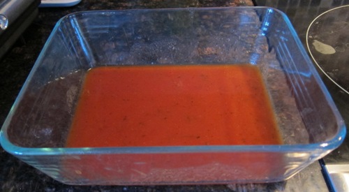 Pour just enough tomato sauce to coat the bottom of the baking dish: