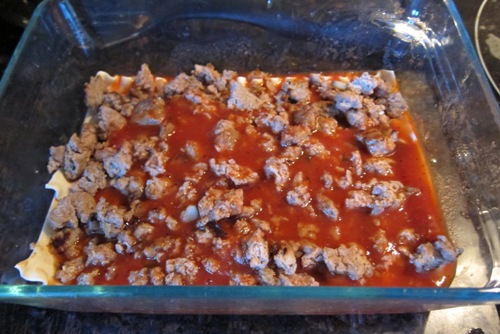 Step 5 Of How To Make Lasagna: Add A Meat Sauce Layer