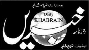 Khabrain is daily urdu newspaper of Pakistan. It was launched from Lahore on September 26, 2000. It is publishing news from Islamabad, different cities of Punjab, Sindh and Balochistan. Zia Shaid is the founder of this newspaper. Daily Khabrain is providing information related to shobiz, politics, sports, agriculture, national and international issues. Other than all of these things Khabrain has seprate portion for Kashmir and Sarhad to highlight there issues and provide news related to these cities separately. Not only national it also has a separate column for American news.