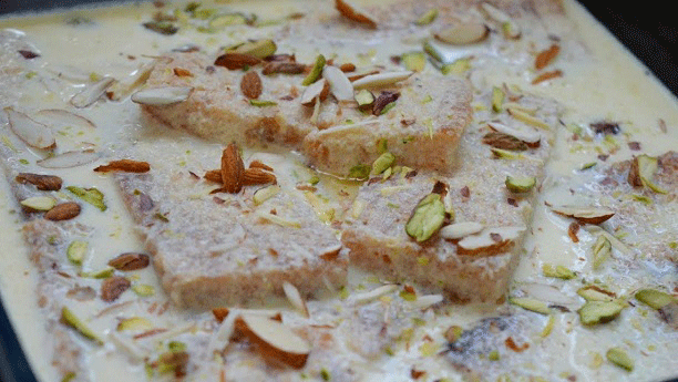 Shahi tukray is a sweet dessert made with fried bread which is then soaked in heated milk along various dessert spices such as cardamom (elaichi) and saffron. shahi-tukray-recipe